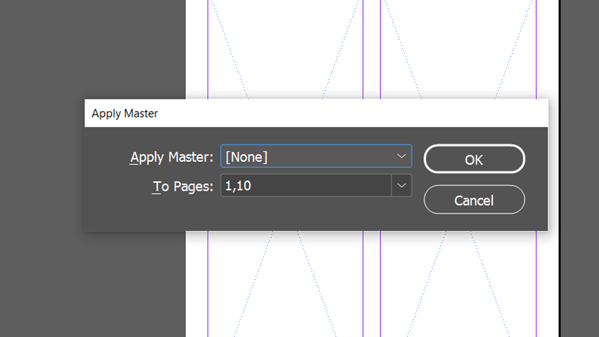 Alternatively, select the pages you want to change from the Pages window, then right-click, and select Apply Master to Pages.