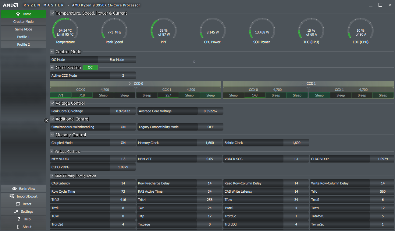 The Ryzen Master UI is fairly complicated, but the interface is designed for both amateurs and enthusiasts. When you open Ryzen Master for the first time, the Home tab should look like this: