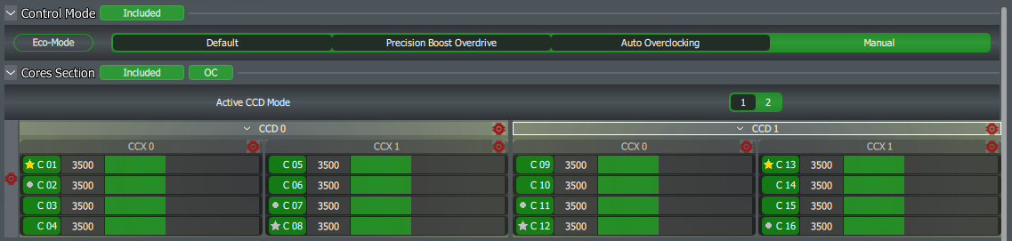 But if you insist on choosing Manual, then you’ll want to look at the Cores Section. If you see the Active CCD Mode option, set it to 2. Then, click wherever you see CCD followed by a number.